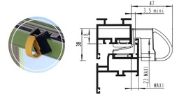 Raamknip aluminium naturel, nylon schoot, A=21 mm